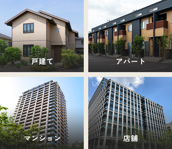 ご自宅の壁や屋根の塗装から、さらに高所での作業が必要な、マンションや大型店舗などの建物の塗装もご相談ください!